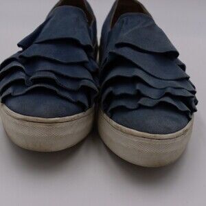 Seychelles Blue Ruffle Slip on Suede Shoes 8.5