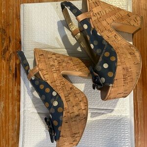 Seychelles Blue and Tan Platform Sandals with Cork Wedge