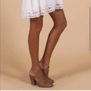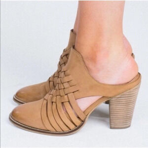 Seychelles Brown Tan Leather Woven Mules I’m Yours Heels 7