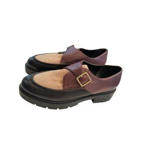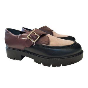 Prepped and ready in these eye-catching, two-tone loafers accented with a classic monk strap and aggressive outsole. With a retro menswear design, they look especially great when paired with cropped pants and miniskirts.