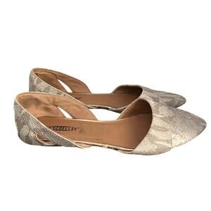 Seychelles Cello Taupe White Snakeskin Embossed d'Orsay Flats Pointed Toe 9 Wide