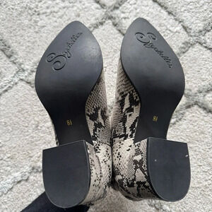 Seychelles Chaparral Leather Snake Print Side Zip Ankle Boots black cream 8.5
