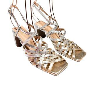 Seychelles Charter Heels Strappy Sandals Size 8.5 Leather Silver