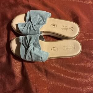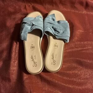 Seychelles Coast Blue Suede Knot Slide Sandals Women's Size 8 Slip-On