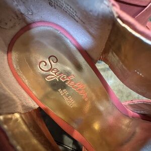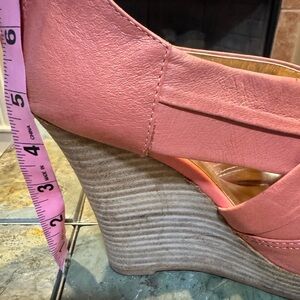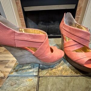 Stylish coral wedge sandals with elegant crisscross design. Leather uppers. Will add that beautiful pop of color.