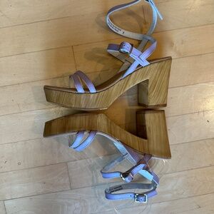 Seychelles Double Dip Lavender Purple Strappy Chunky Wood Retro Sandal, 7