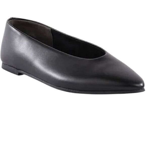 A supersmooth upper compliments the luxe look of a pointed-toe flat featuring a contemporary topline and a slim sole to complete the silhouettel.