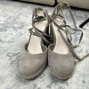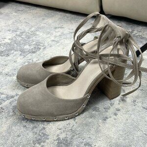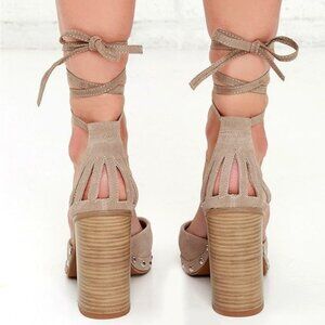 Seychelles Drift Taupe Suede Leather Lace up Heels Studded Sz 8.5