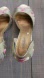 Step out in style with these elegant floral embroidered heels. Featuring a stunning gold base with intricate pink and green floral designs, these shoes are perfect for any occasion.