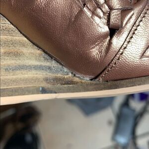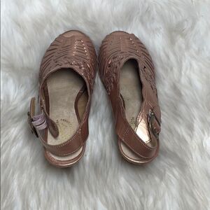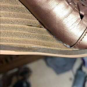 Seychelles Gold Woven Leather PeepToe Wedge Sz 6.5