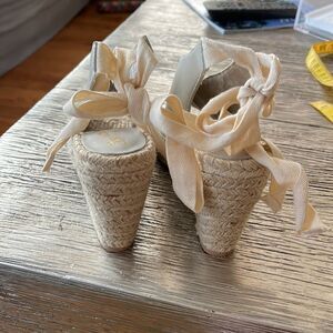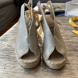 Seychelles Gray Leather Back Tie Espadrilles sz 7 NWOT