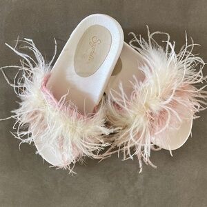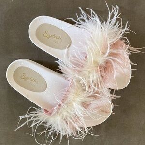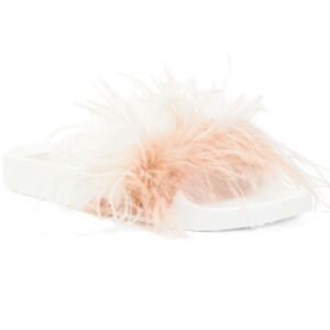 So much fun! Find some frills for your look with the fabulous Seychelles In Your Cup slides. Synthetic upper and feather detailing. Slip-on wear. Open-toe silhouette.