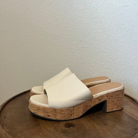 Seychelles Ivory Cork One Of A Kind Block Heel Slide Sandals Women's Size 9