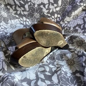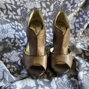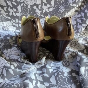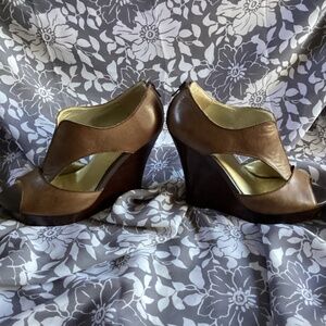 Seychelles leather wedge in brown. Simple and classy. Zipper entry in back.