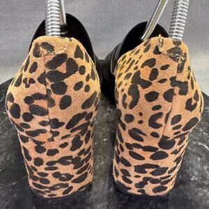 Seychelles Leopard Print & Black Leather Peep Toe Block Heels Women's Size 8 US