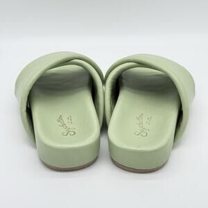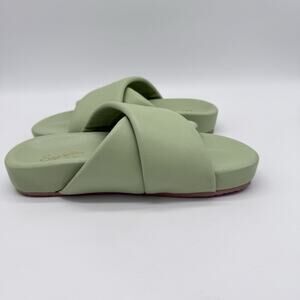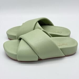 Seychelles Lighthearted Womens 7 Leather Slide Soft Cushioned Green Cross Sandal