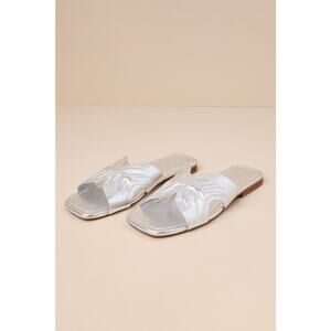 Seychelles Madhu Silver Metallic Leather Flat Slide Sandals
