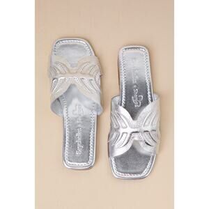 Seychelles Madhu Silver Metallic Leather Flat Slide Sandals