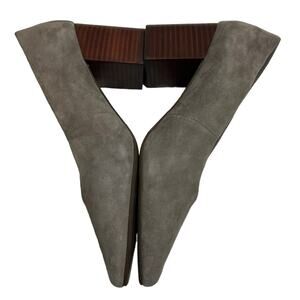 Seychelles Matilda suede block heel pointy toe heels gray Sz 7.5