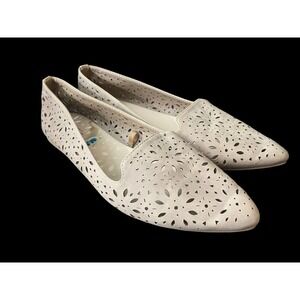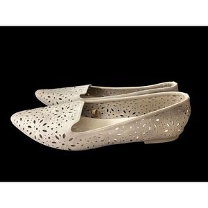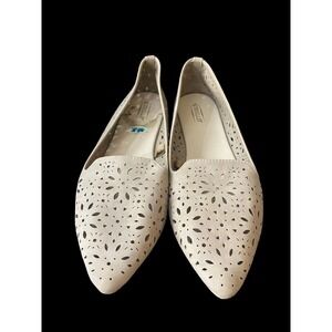 Seychelles Petunia Laser Cut Perforated Pointed Toe Flats 10 Greige Gray Beige