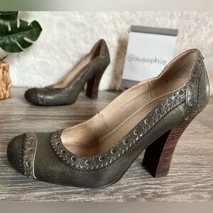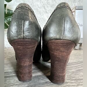 Seychelles Picture Perfect distressed stacked heels in Olive leather. Size 7