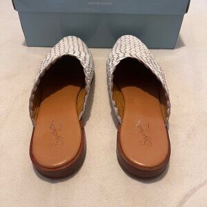 Seychelles Places To Go Size 8.5 White Leather Woven Slip-On Mules Comfort Casua