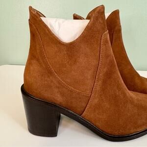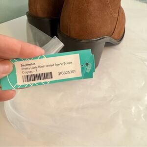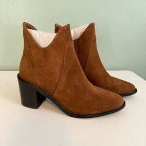 Seychelles Pretty Little Bird Heeled Suede Bootie Cognac Size 7 Women's