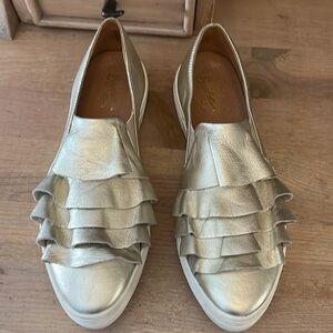 Seychelles Quake Gold Ruffle Platform Sneakers Slip-On Size 7.5 Metallic