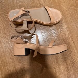 A single skinny toe strap and monochromatic leather wrapped heel make a bold statement, while the adjustable buckle closure keeps you securely strapped in.