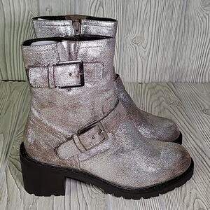 Seychelles Run Free Pewter Silver Combat Moto Boots Womens 7.5 NEW