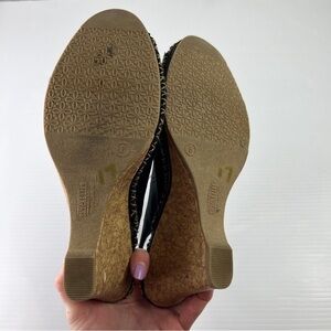 Seychelles SINGAPORE Sandals Womens 8 Cork Wedge Heel Slingback Peep Toe Black