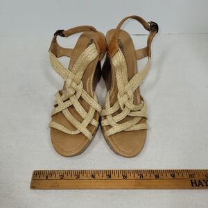 Seychelles Sandals Womens Size 8.5 Beige Leather Skin Block Heel Back Strap.