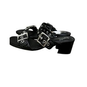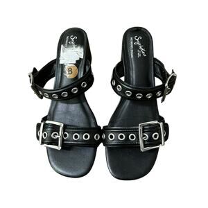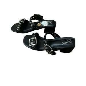 Seychelles Scarlette Black Low Block Heel with Silver Buckle Straps Size 8