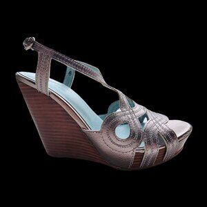 Seychelles Silver Crisscross Strap Wedge Sandals – Metallic Finish, NWT