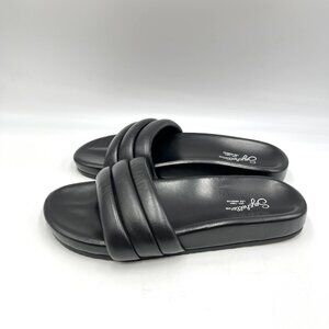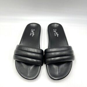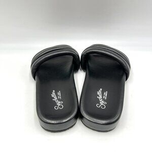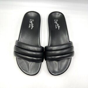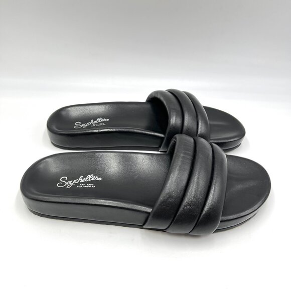 Seychelles Size 7 Low Key Black Leather Slip On Wide Band Slides Sandals Shoes