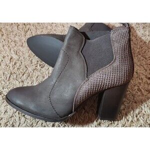 Seychelles Size 8.5 Textured Brown Leather Upper Stacked Heel Chelsea Booties