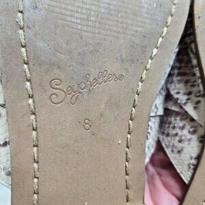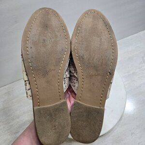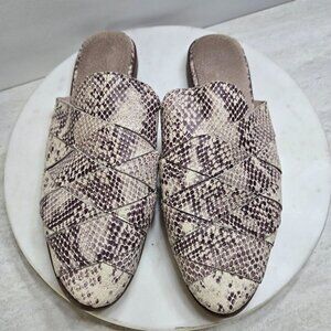 Seychelles Snake Print Mules Womens 8 SlipOn Leather Cream Woven Festival Boho