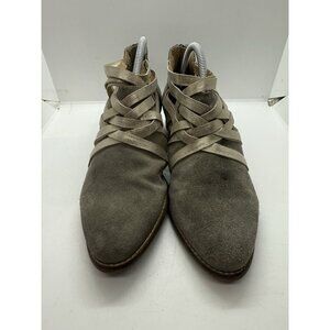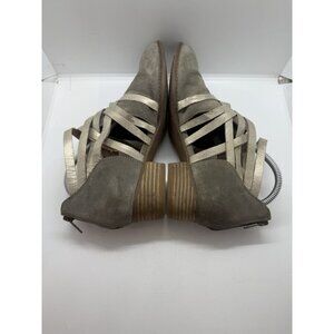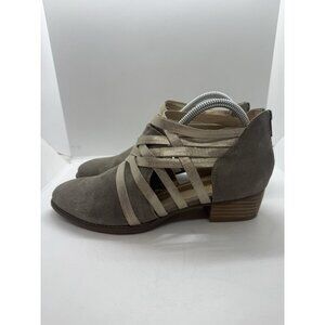 Seychelles So Blue Suede Ankle Women's Bootie Sz 9 Taupe Gold Metallic Strappy