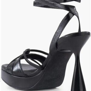 New with tags. The Sweet Nothings sandal by Seychelles features a knotted vamp, wraparound ankle straps, and a bold platform heel for modern edge. Crafted in smooth black leather, this style blends vintage charm with contemporary polish—perfect for events, nights out, or statement styling.
