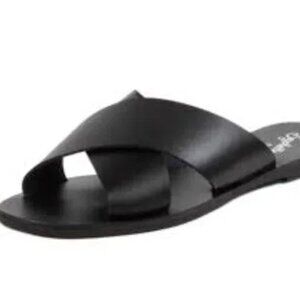 Elegant black sandals with crisscross design. Ideal for versatile wear.