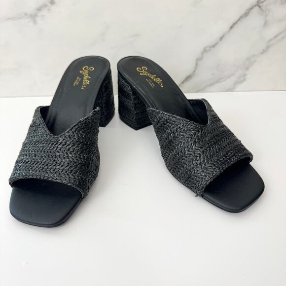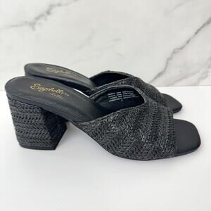 Seychelles Women Adapt Raffia Heeled Sandals Size 7 Minimal Classic Beachy Black