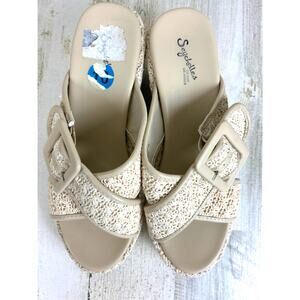 Seychelles Women’s 10 Beige Slip-On Platform Faux Leather Buckle Wedge Sandals