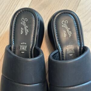 Seychelles Womens Black Leather Sandal Puffy Platform Slides Made in Italy Sz 10