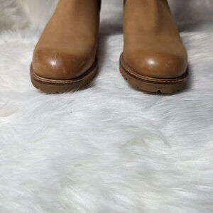 Far Fetched Lug Chelsea Boot Tan Women's 10 MSRP $169. Add a stylish touch to your fall/winter ensemble with the Far Fetched Chelsea Lug Boot that features a stacked leather heel and easy pull-on tab.