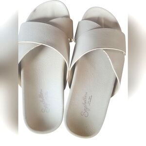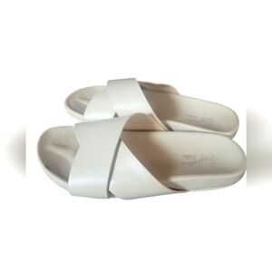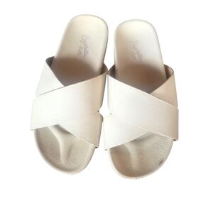 Seychelles Women's Lighthearted Leather Criss Cross Band Cream Slide Sandals 8