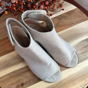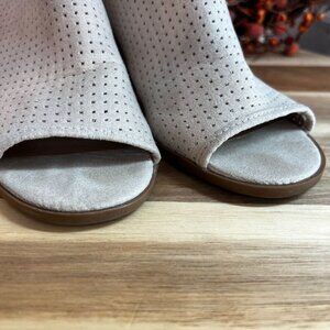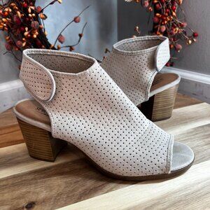 Seychelles Women's Perforated Block Heel Peep Toe Sandal Sz 8 Taupe