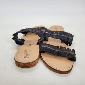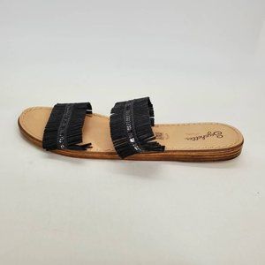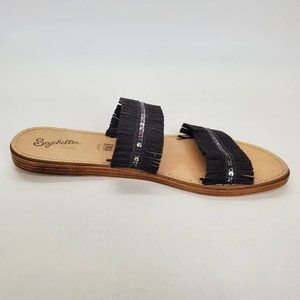 Seychelles Womens Someone Comin Slides Sandals Black Fringe Sequined Slip On 9