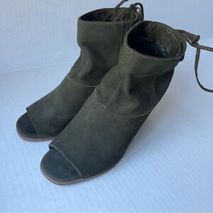 Seychelles Women’s Triple Threat Open Toe Booties in Olive ~ Size 8 & 1/2