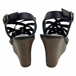 Seychelles Woven Vegan Leather Black Wedges. Size 10. 3 3/4” heel with 1 1/2” platform. Ankle strap. Excellent used condition.