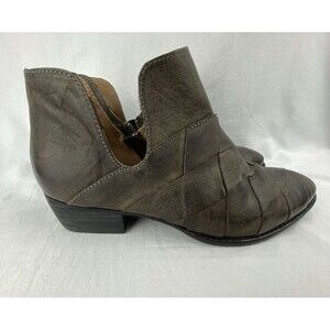 Anthropologie Seychelles Leather Woven Booties Ankle Cut Out Women's Size 8 1.5" Stacked Heel 3.75" Shaft inside zip Dark Brown